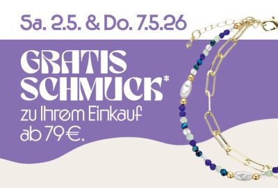 GRATIS SCHMUCK Gratis zu Ihrem Einkauf ab 79 € Einkaufswert. Feiern Sie mit uns Mode, Stil und gute Vibes. Entdecken Sie…